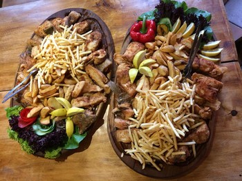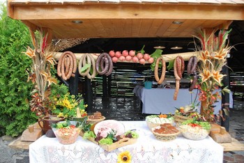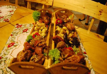Najwyższej jakości swojskie mięsa ze specjalnych marynat oraz wyroby wiejskie według staropolskich przepisów, serwowane z różnymi opiekanymi ziemniakami, domowej roboty sosami.