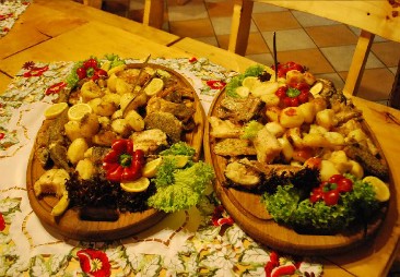 Wilżańskie świeżutkie rybki z włłasnej hodowli, które serwujemy prosto z patelni, pieca, grilla oraz z naszejwędzarni. talarki, ziemniaki opiekane oraz cała zielenina, wszystkie sosy.